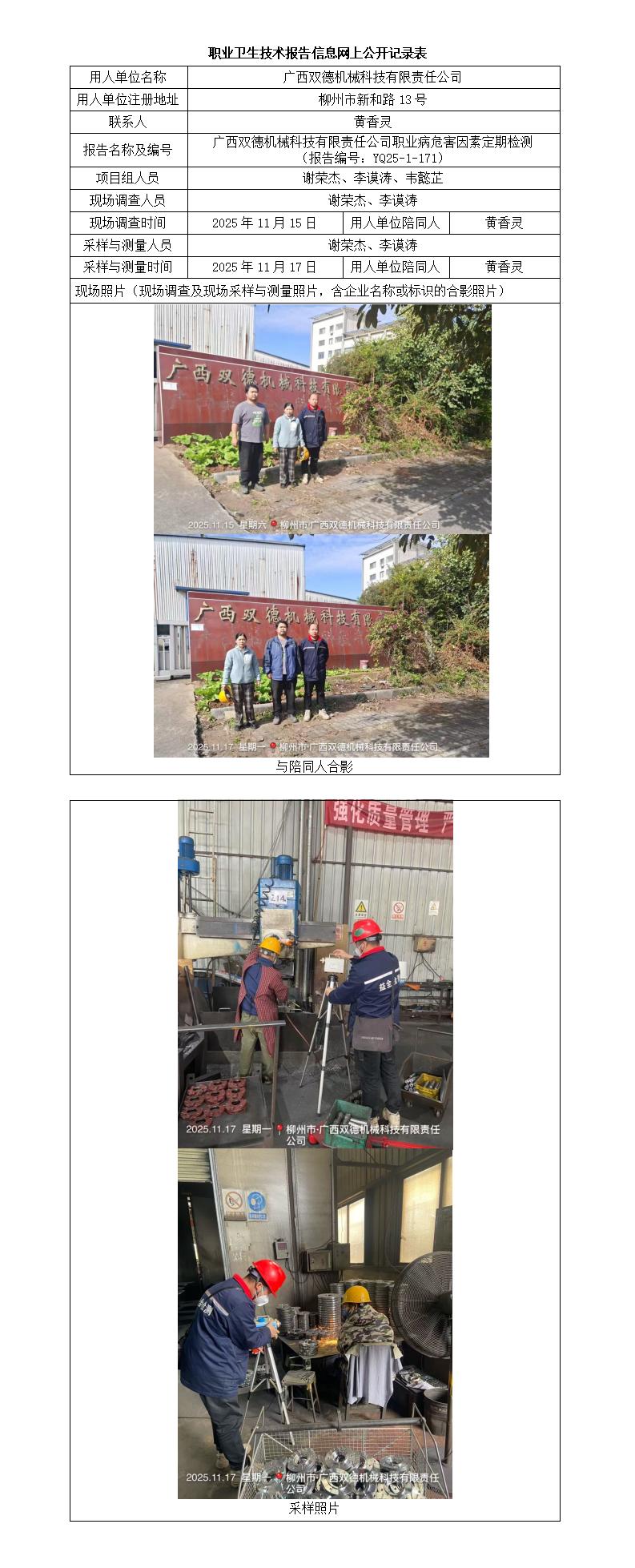 廣西雙德機(jī)械科技有限責(zé)任公司職業(yè)病危害因素定期檢測(cè) (報(bào)告編號(hào):YQ25-1-171)
