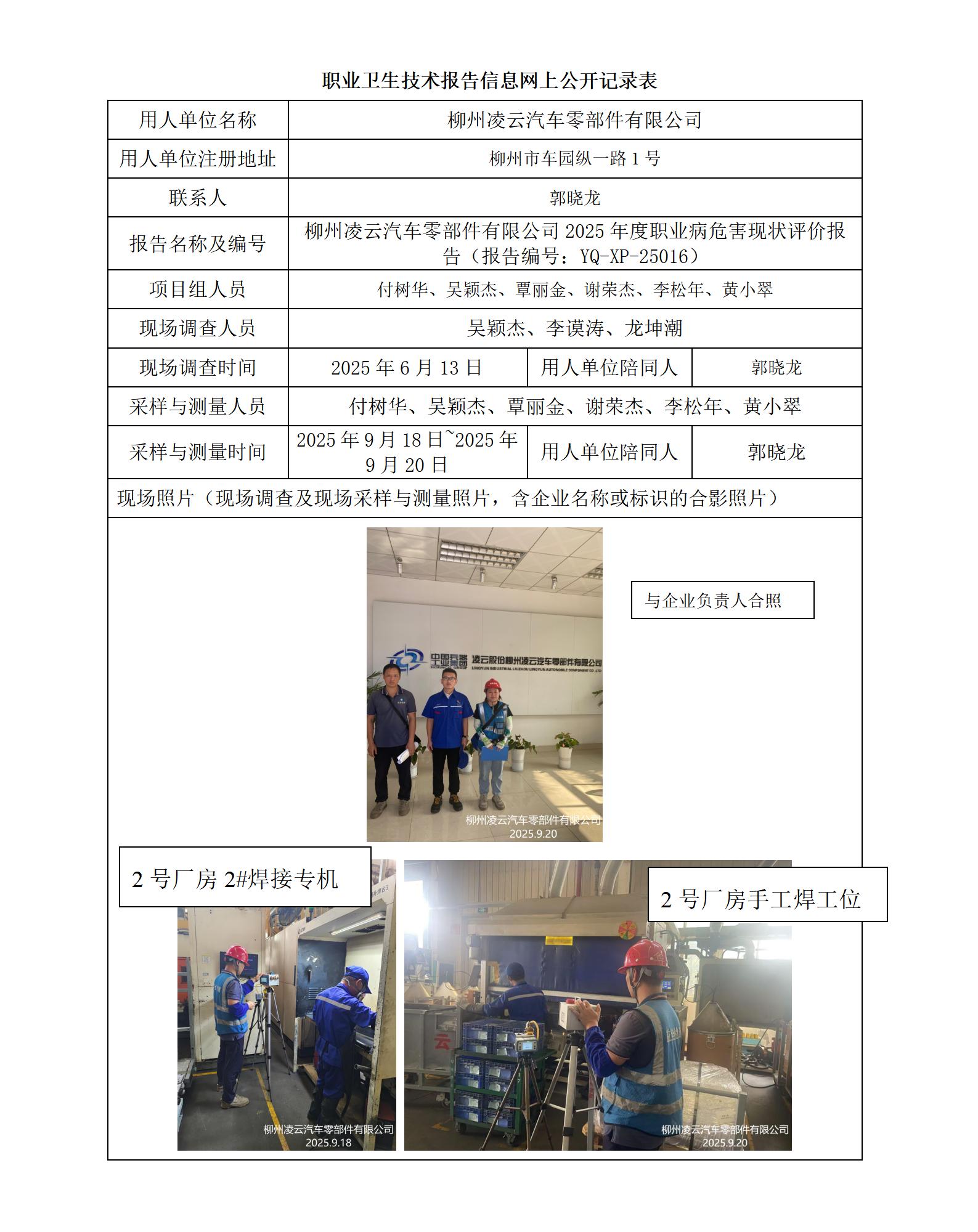 柳州凌云汽車零部件有限公司2025年度職業(yè)病危害現(xiàn)狀評價報告