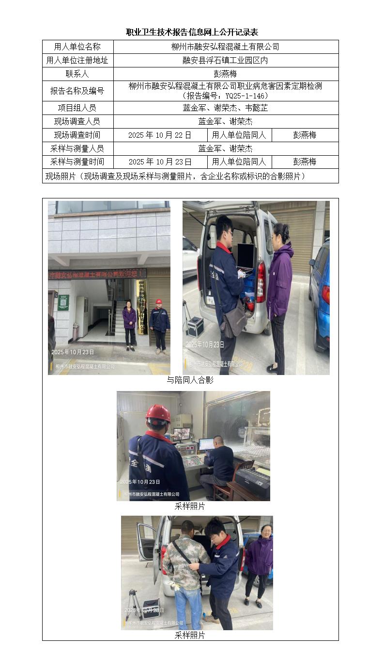 柳州市融安弘程混凝土有限公司職業(yè)病危害因素定期檢測(cè) (報(bào)告編號(hào):YQ25-1-146)