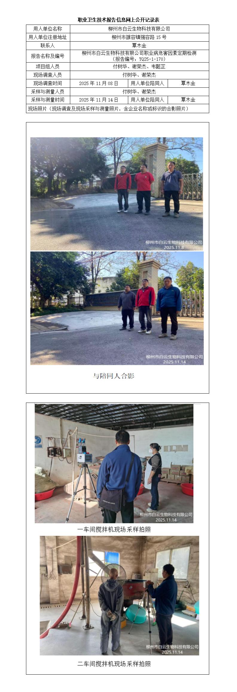 柳州市白云生物科技有限公司職業(yè)病危害因素定期檢測 (報告編號:YQ25-1-170)