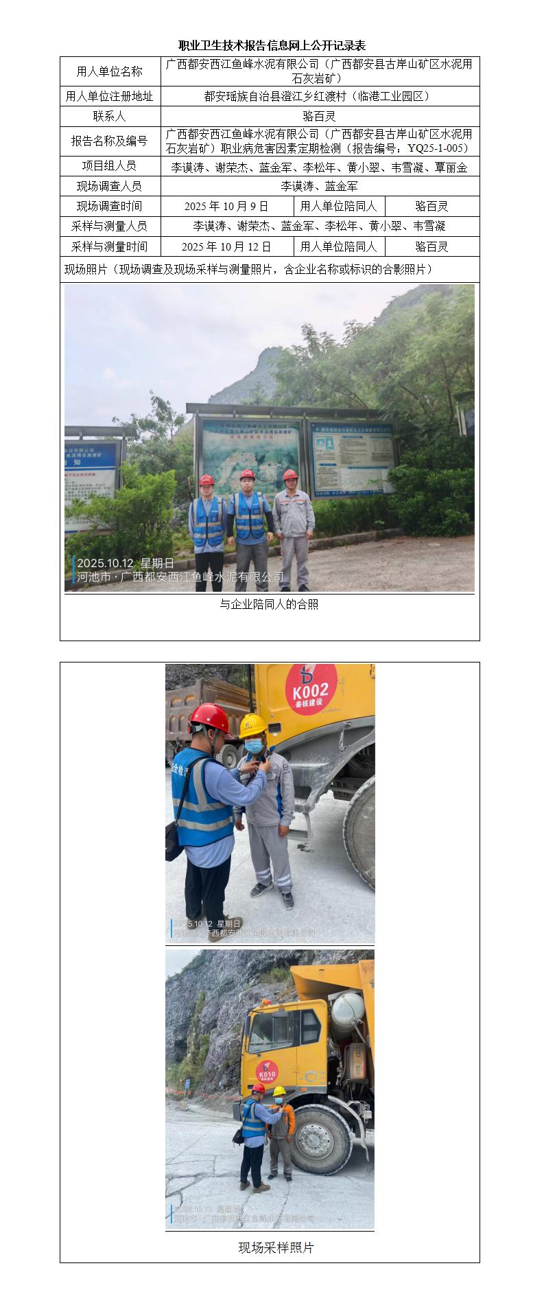 廣西都安西江魚峰水泥有限公司(廣西都安縣古岸山礦區(qū)水泥用石灰?guī)r礦)職業(yè)病危害因素定期檢測(cè)