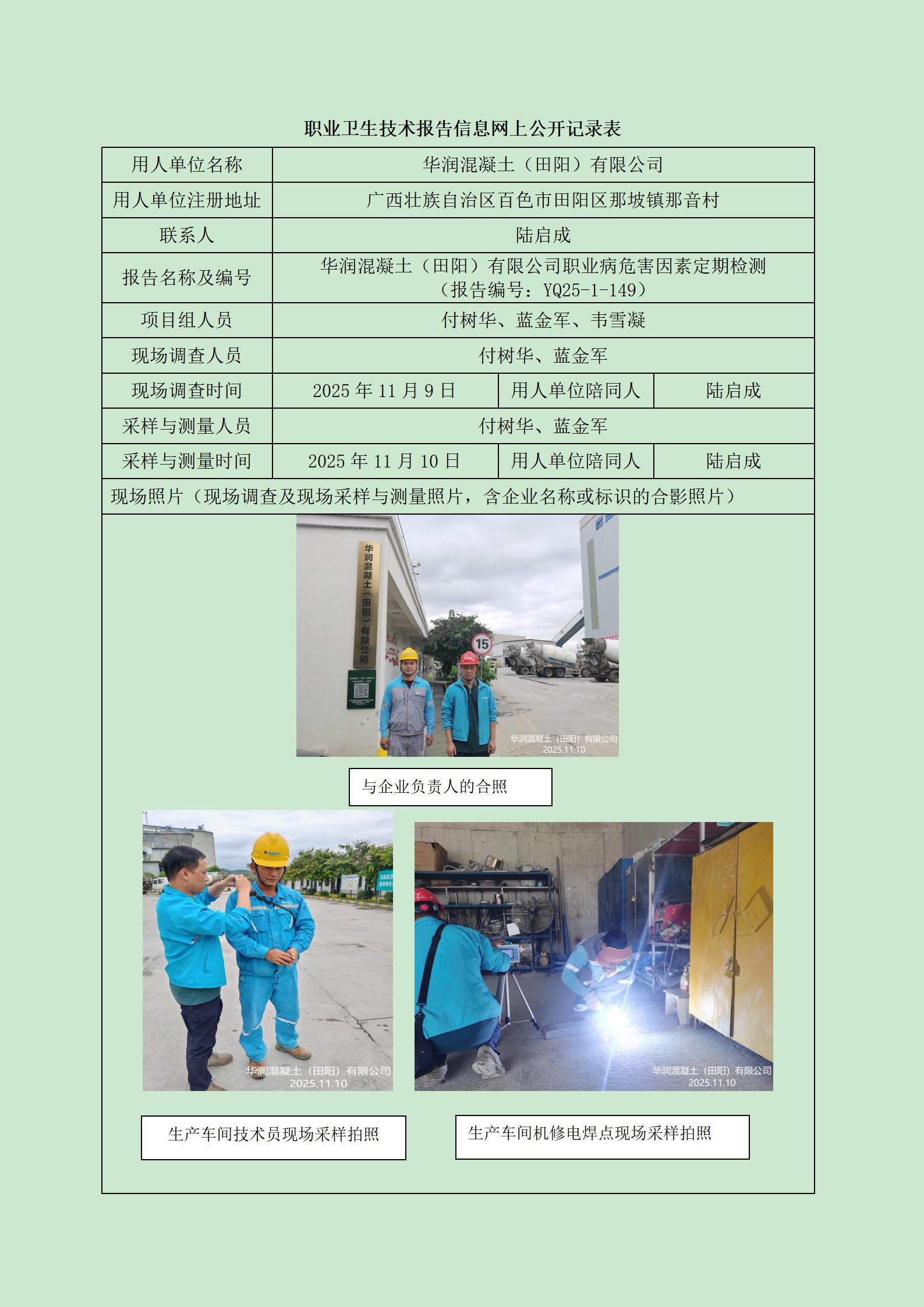 華潤混凝土(田陽)有限公司職業(yè)病危害因素定期檢測信息網(wǎng)上公開記錄