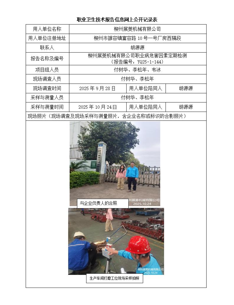 柳州展菱機械有限公司職業(yè)病危害因素定期檢測
