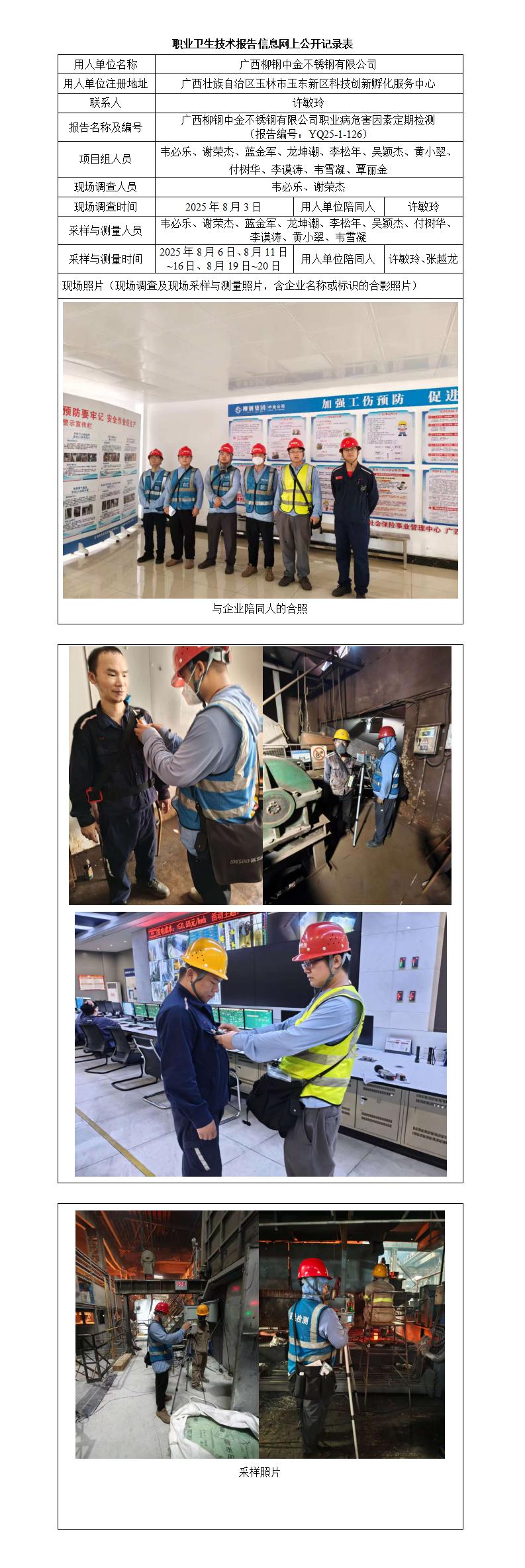 廣西柳鋼中金不銹鋼有限公司職業(yè)病危害因素定期檢測