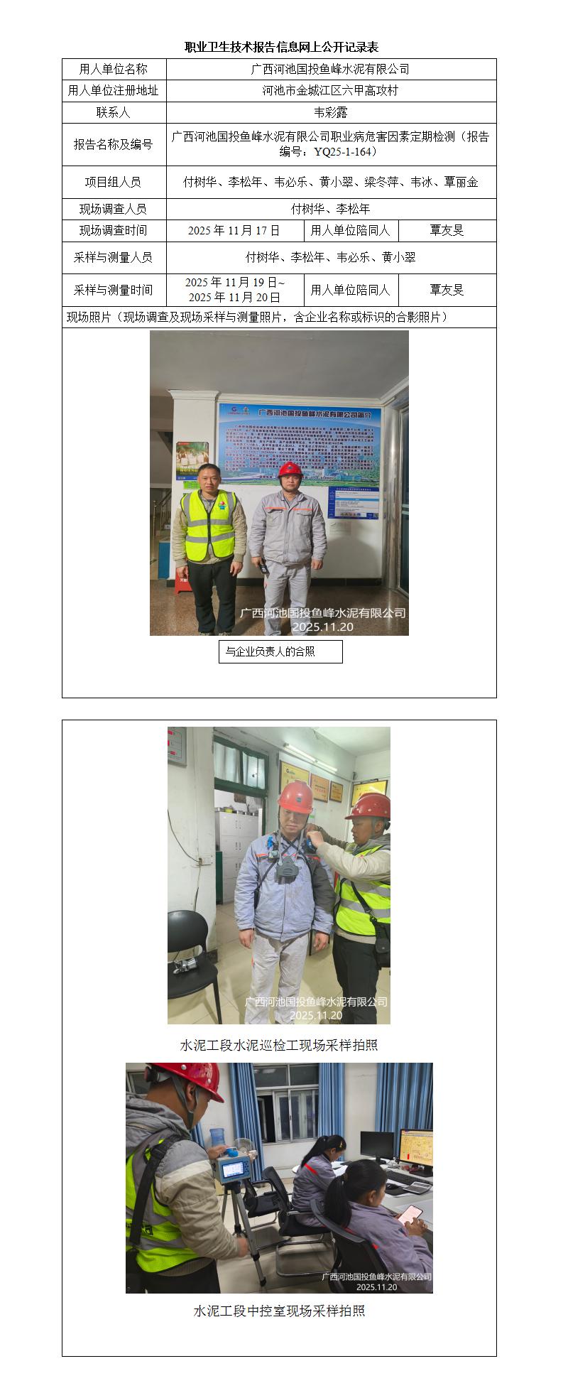 廣西河池國(guó)投魚(yú)峰水泥有限公司職業(yè)病危害因素定期檢測(cè)