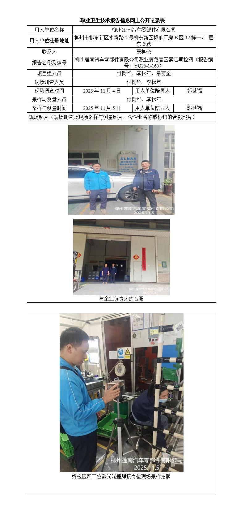 柳州蓮南汽車零部件有限公司職業(yè)病危害因素定期檢測
